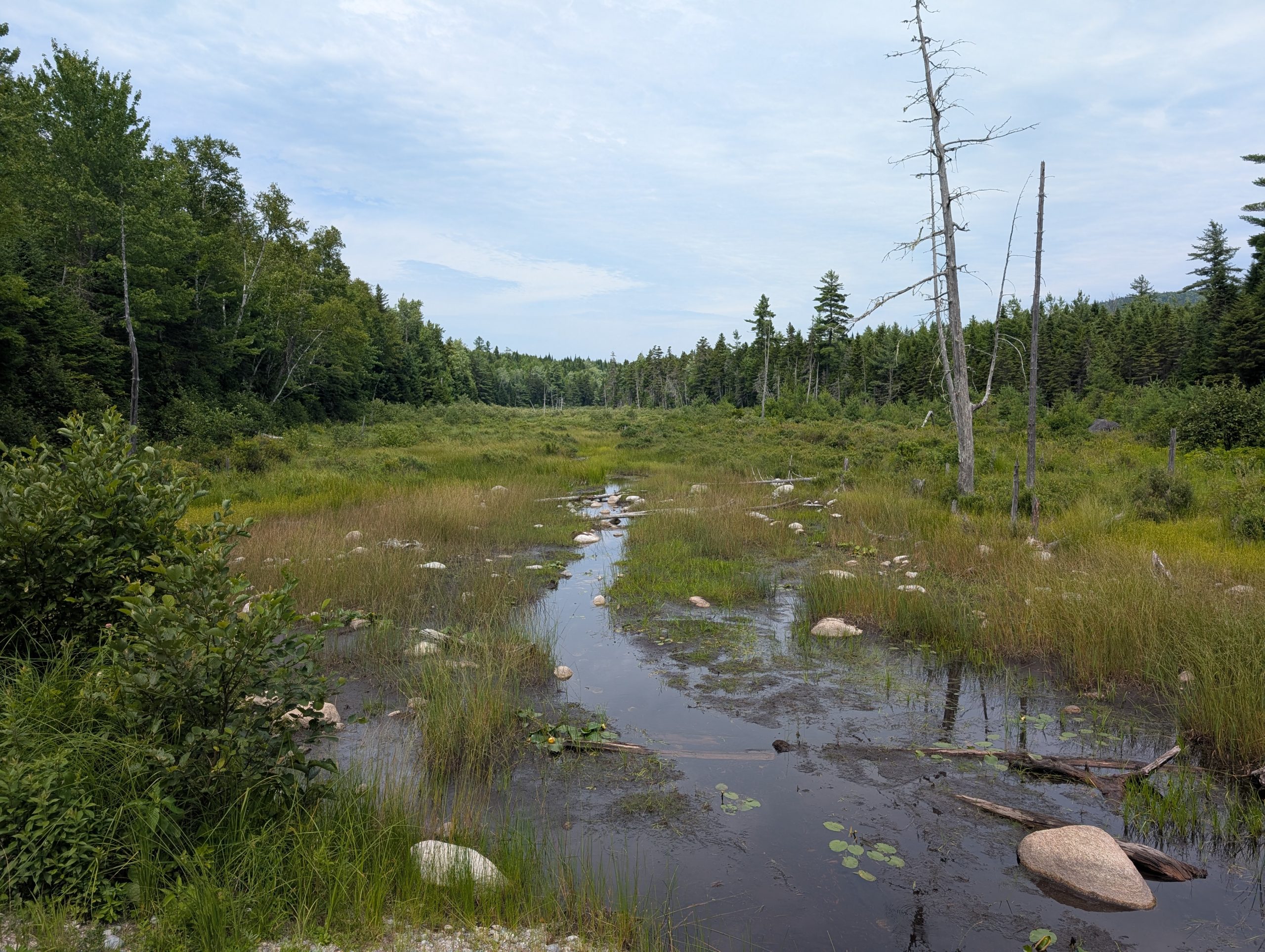 On a whim, while out and about, we drove the loop trail through the Katahdin Woods and Waters National Monument. Native spelling is Ktaadn. About 35 miles of gravel road in an area next to Baxter State Park, where we will go eventually. Good thing rental cars are infinitely capable! Couldn’t see much of the mountain (the viewing area is closed for reconstruction), but we sure saw lots of woods!