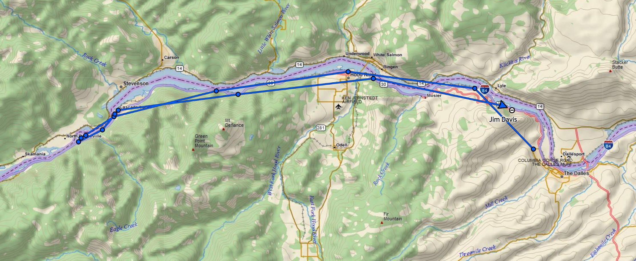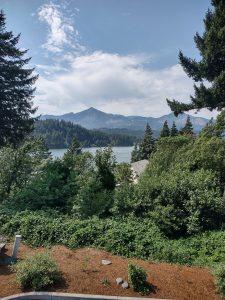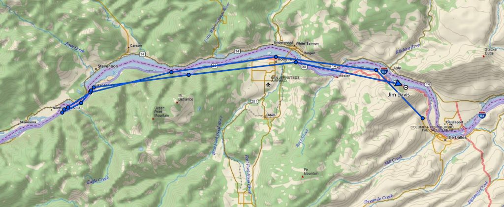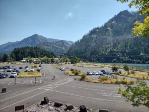 Both the Bonneville Dam and the Thunder Island place give views of Table Mountain (Washington side of the river).  Sometime in about the 1500s, one whole face of the mountain fell into the river, creating some of the land mass around the Bonneville Dam and coincidentally named the Bonneville Slide.  One wonders when the next huge slide will happen.  We don’t want to be there when it does!