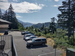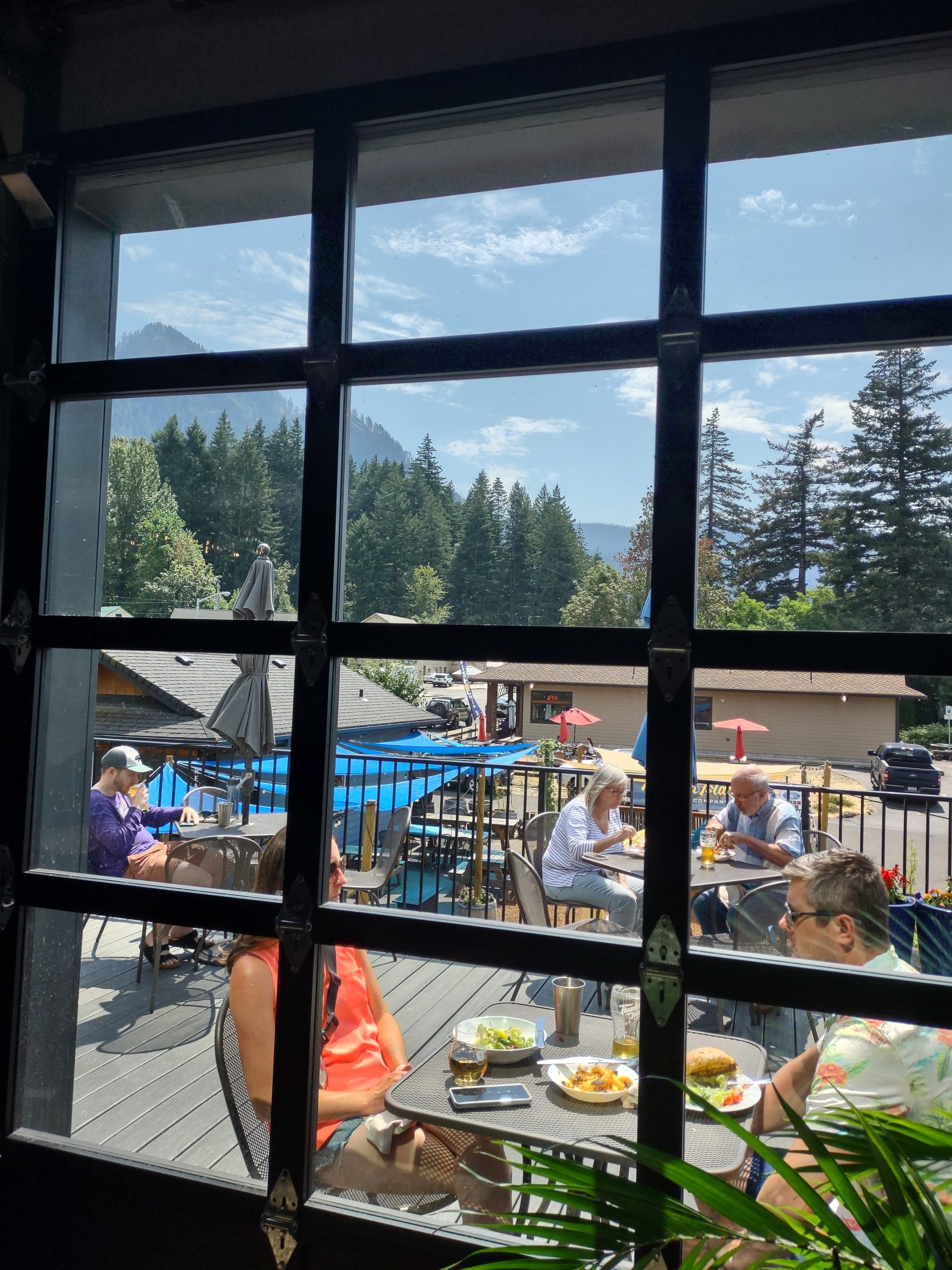 Having seen enough, we drove back to Cascade Locks and had lunch at the Thunder Island brewing company.  Nice salmon rice bowl and blackened chicken sandwich, accompanied by the Thunder Island juicy and 140 IPAs.