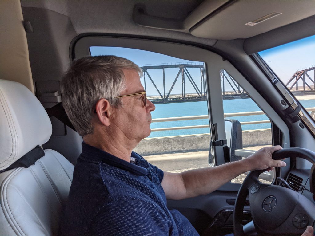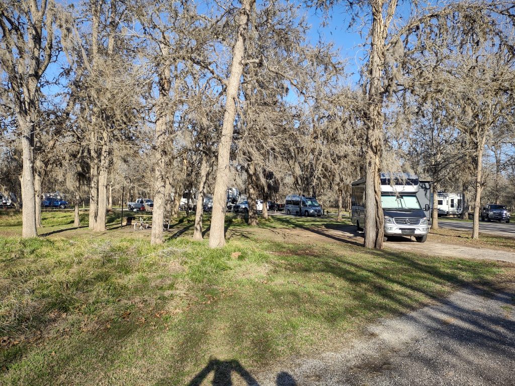 Broke camp, filled propane tank, headed west on I-10. Drove through downtown Houston; we’ve never seen so many Jersey barriers in our lives! Along the way we had breakfast bowls at a Waffle House. The overage (huge bowls of food) will be breakfast tomorrow. I-10 was crowded even on Sunday. We can only imagine what it’s like on a workday. Houston is purely ugly. We finally got past Houston. Our fuel gage went to the warning level, but there was at least five gallons left in the tank. Fuel was cheaper west of Houston. The Steven F Austin SP is very nice. Flat pull-through sites on a loop, wooded with shade.
