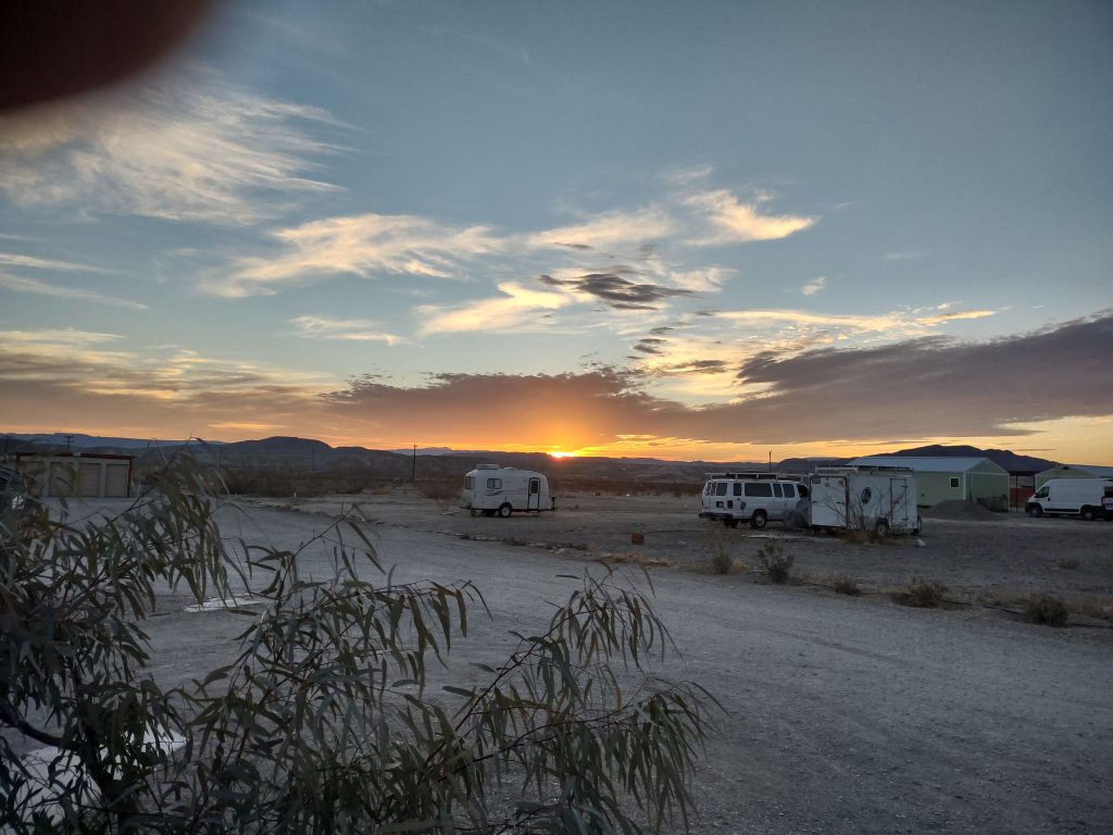 90W to Marathon, a simple crossroads with diesel above $4/ gallon. This is the easterly entrance to the park, but we’re not sure the road is good. We continued to Alpine TX, a much larger town. Diesel at the Stripes, groceries at Parkers, then south to Terlingua. We made it to the Paisano RV park, deciding that 400 miles is too long a driving day! TX-118 south from Alpine to Terlingua is bumpy and twisty. We have a nice, level site. We chatted with the camp host. We ate the chicken that now has been marinating for 24 hours. No TV reception, but good Wi-Fi and roaming cell service.