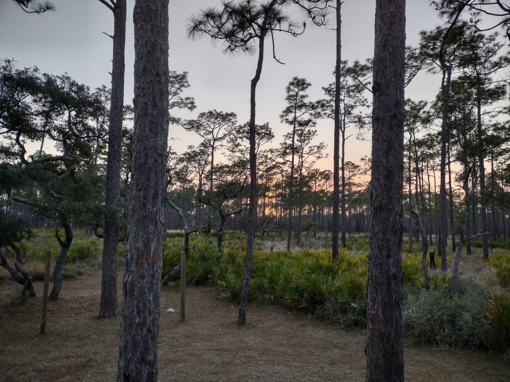 Heard reveille at 7am, and we slept on! Rose about 9am. Coffee and toast. Made all preps for getting underway. Drove to Ft Stewart, which is the biggest base we’ve ever been on. Along the way, Lenscrafters called saying glasses were at Southpoint. We asked them to ship them to a Lenscrafters at Sanford FL. The campground is truly in the woods, accessed by driving the dam containing Holbrook Pond. Cell coverage was poor (turned out to be a massive outage on the east coast) but the Wi-Fi was good enough for Wi-Fi calling. We rode our bicycles around the campground a bit. Chatted with a female SK1 (retired). Butter chicken curry.