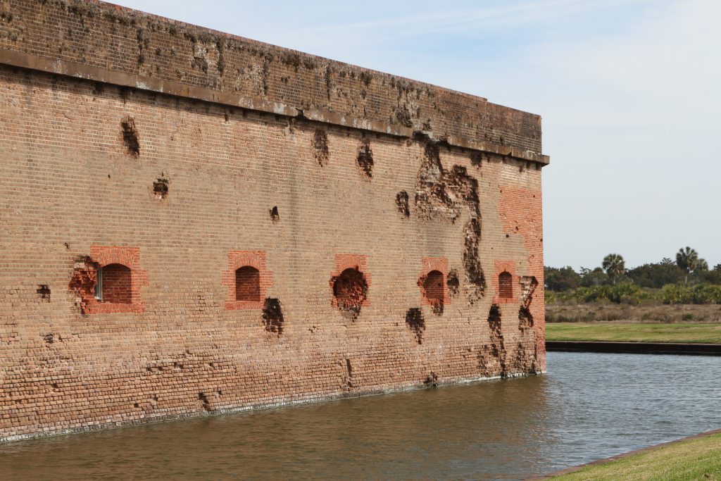 @Ft Stewart. We drove the coach to Ft Pulaski, a Civil War fort where Union rifled shells heralded the end of masonry forts. Bombardment was from Tybee Island, well beyond the range of the Confederate smooth bore cannon. Drove to Tybee Island and ate lunch at grill. Walked down the beach. Found our way to the Ft Stewart Xchange, then Walmart, as Deb’s tablet had died. Bought a new Samsung at Walmart. Dinner was andouille sausage, onions and tomato.
