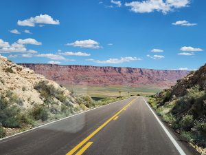 We took the advice, traveling about 100 miles in well over three hours. We were on highways, climbing hills at 10 mph in first gear, the only way to get up the hill. After the first hill rose 1500 ft, and we made it, I thought we’d eventually get back to St. George.
