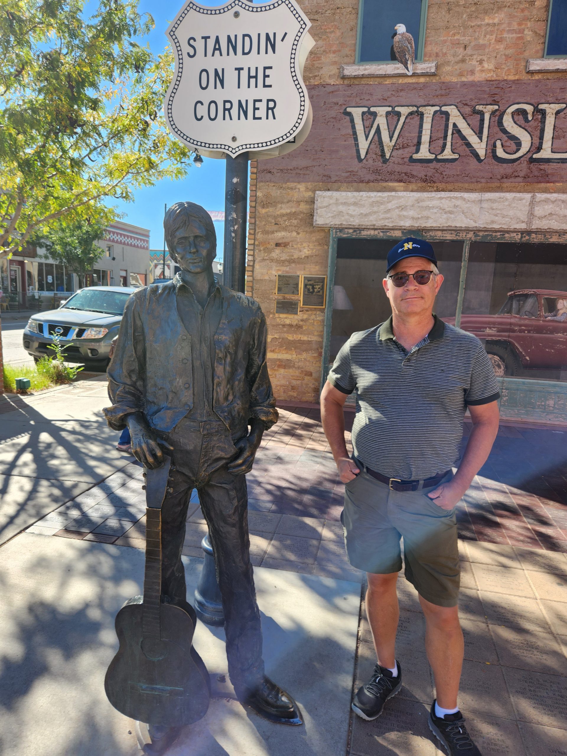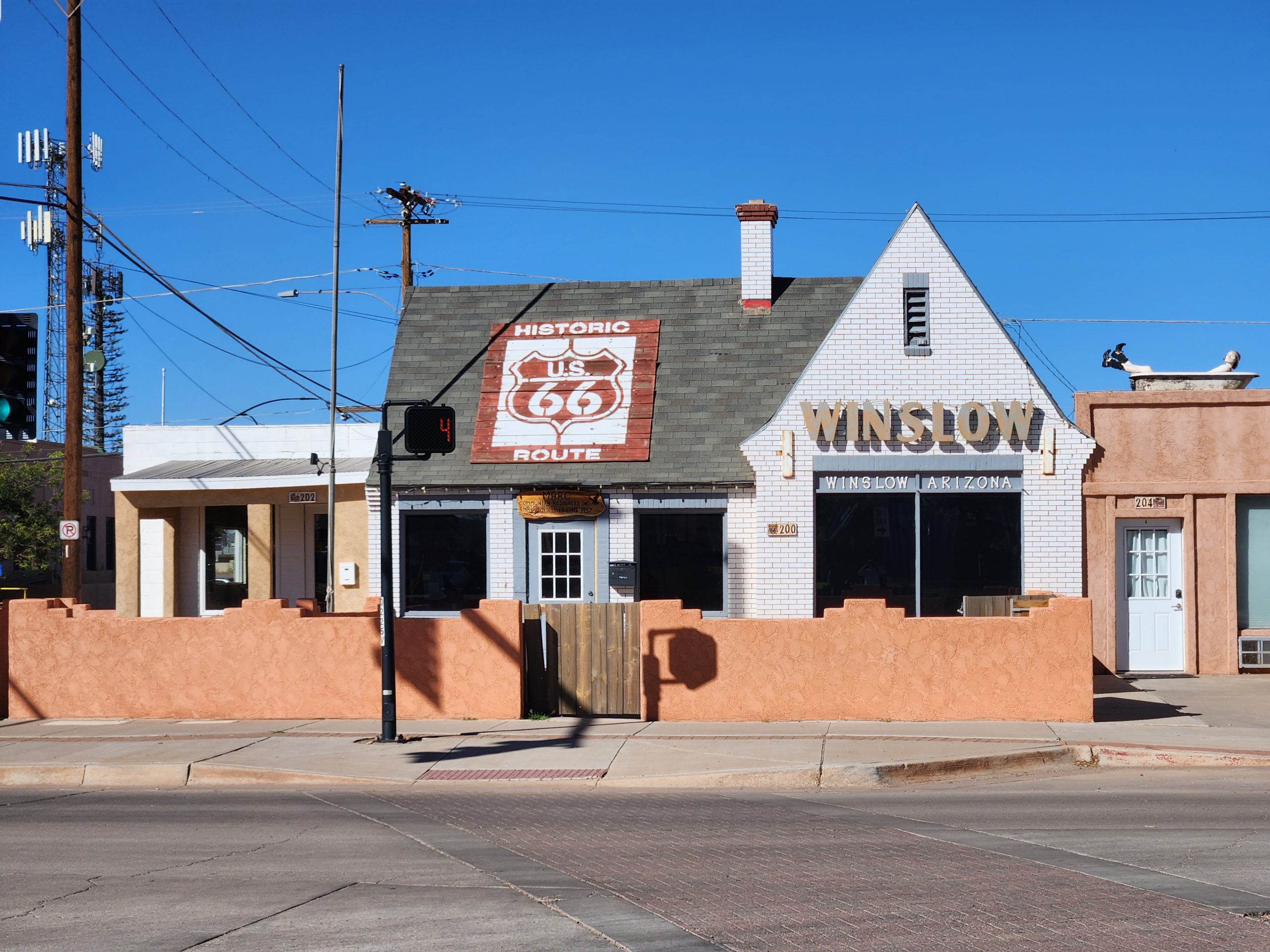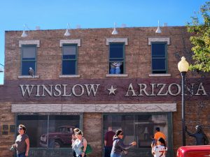 We stopped in Winslow long enough to stand on the corner, take a few pictures and look at the La Posada hotel, which was designed to house rail passengers and reportedly the most glamorous hotel on the Sante Fe railroad.
