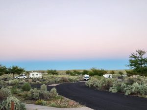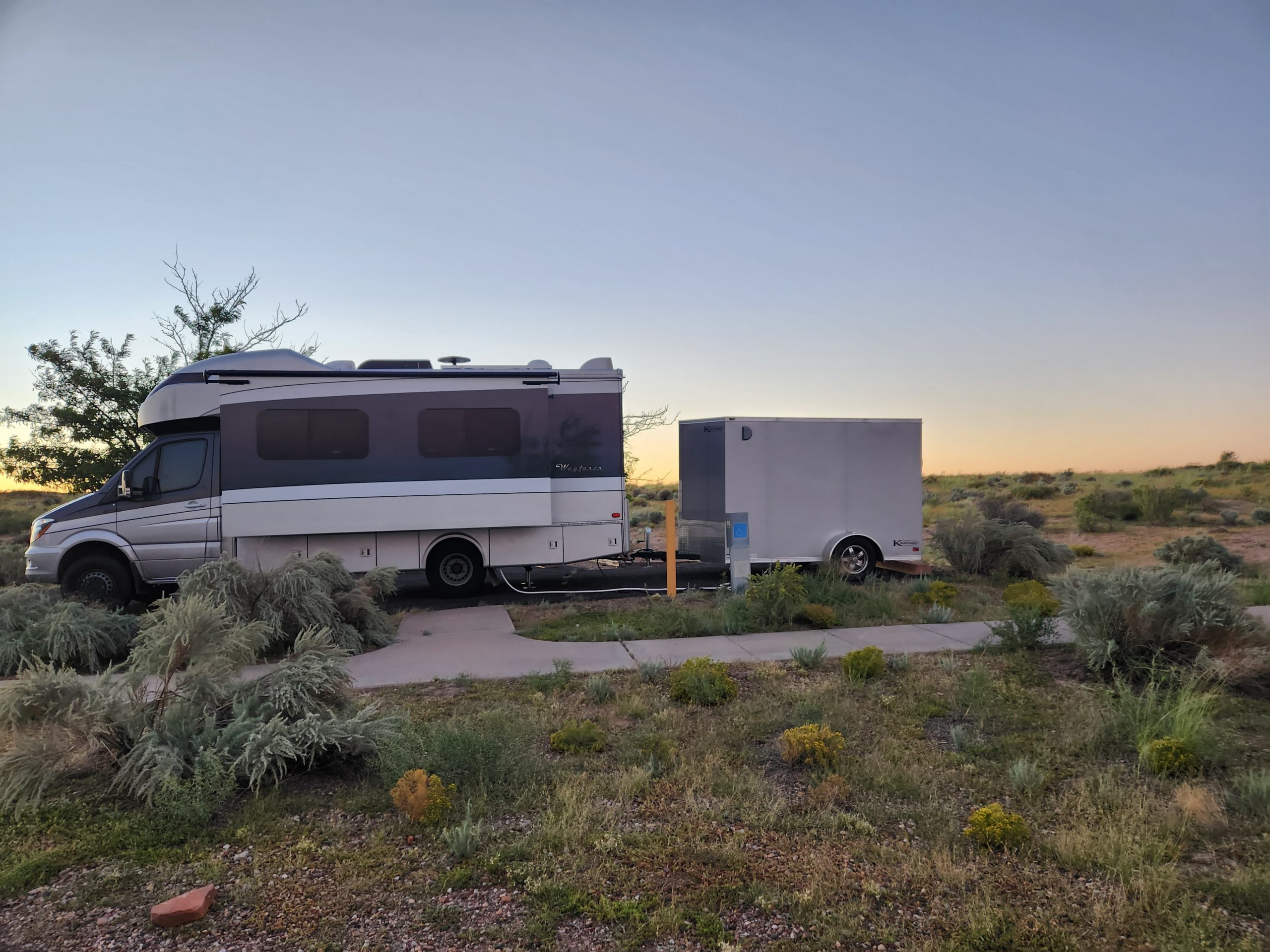 We had to detour nearly the entire circumference of Kirtland AFB to find the open security gate. The FamCamp is first-come, first-served, so we are glad there was an open pull-through spot. Otherwise, we would have dry-camped in overflow and hoped for a site tomorrow.