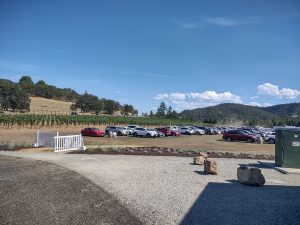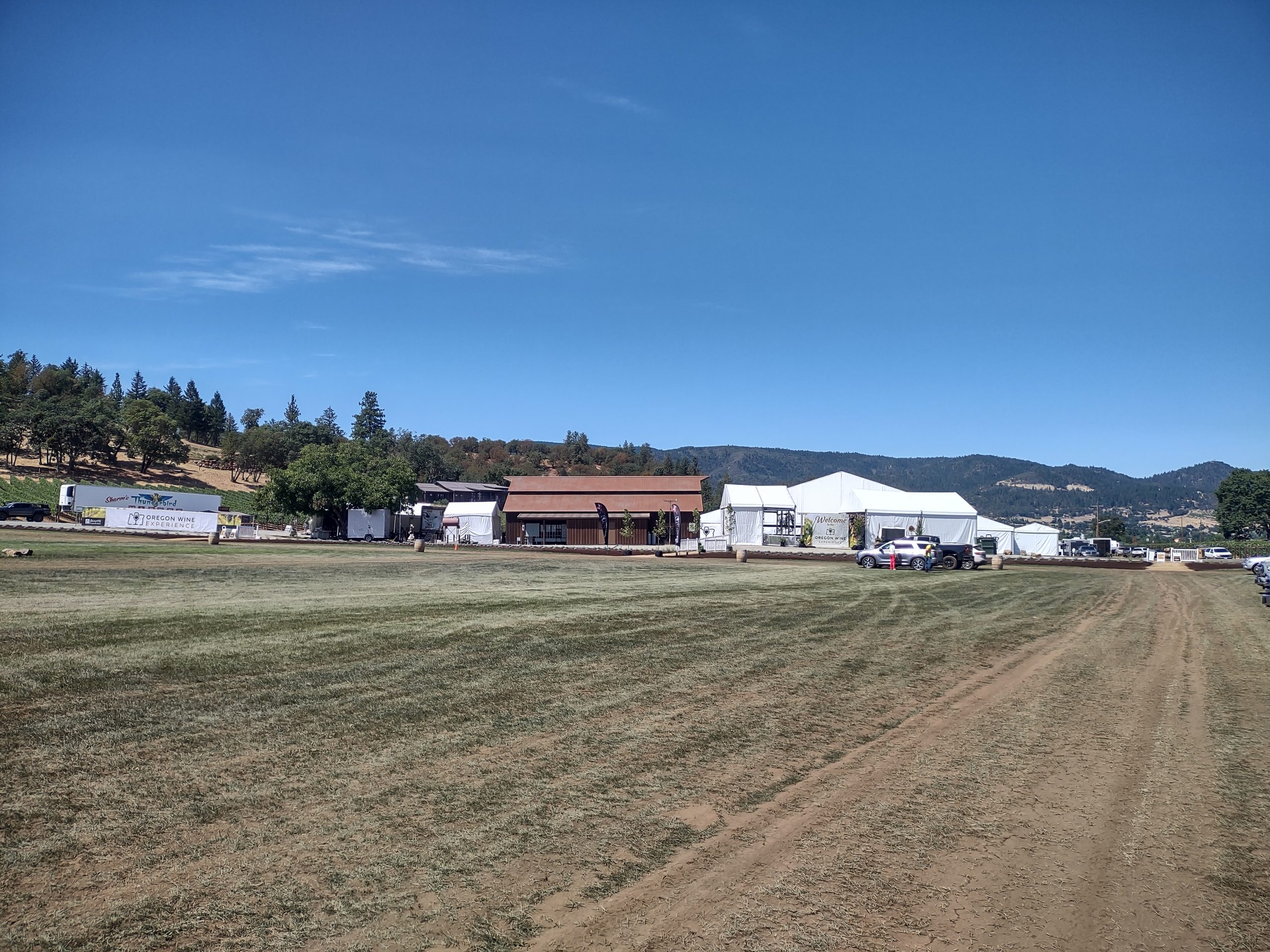 We drove to the OWE from Eugene to Medford, with the road becoming much hillier as we went through Grants Pass. Once there, we parked in a huge field and went under some tents that clearly had livestock in them a week or so ago. We could still smell the evidence of that, but it didn’t detract from our tastings. Deb chased chardonnay and rose, whereas I was almost exclusively tasting Tempranillo and Syrah. It was a hot day, over 100 degrees, so the shade and the electric fans were welcome.