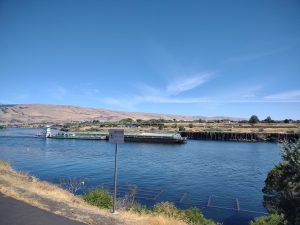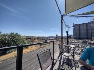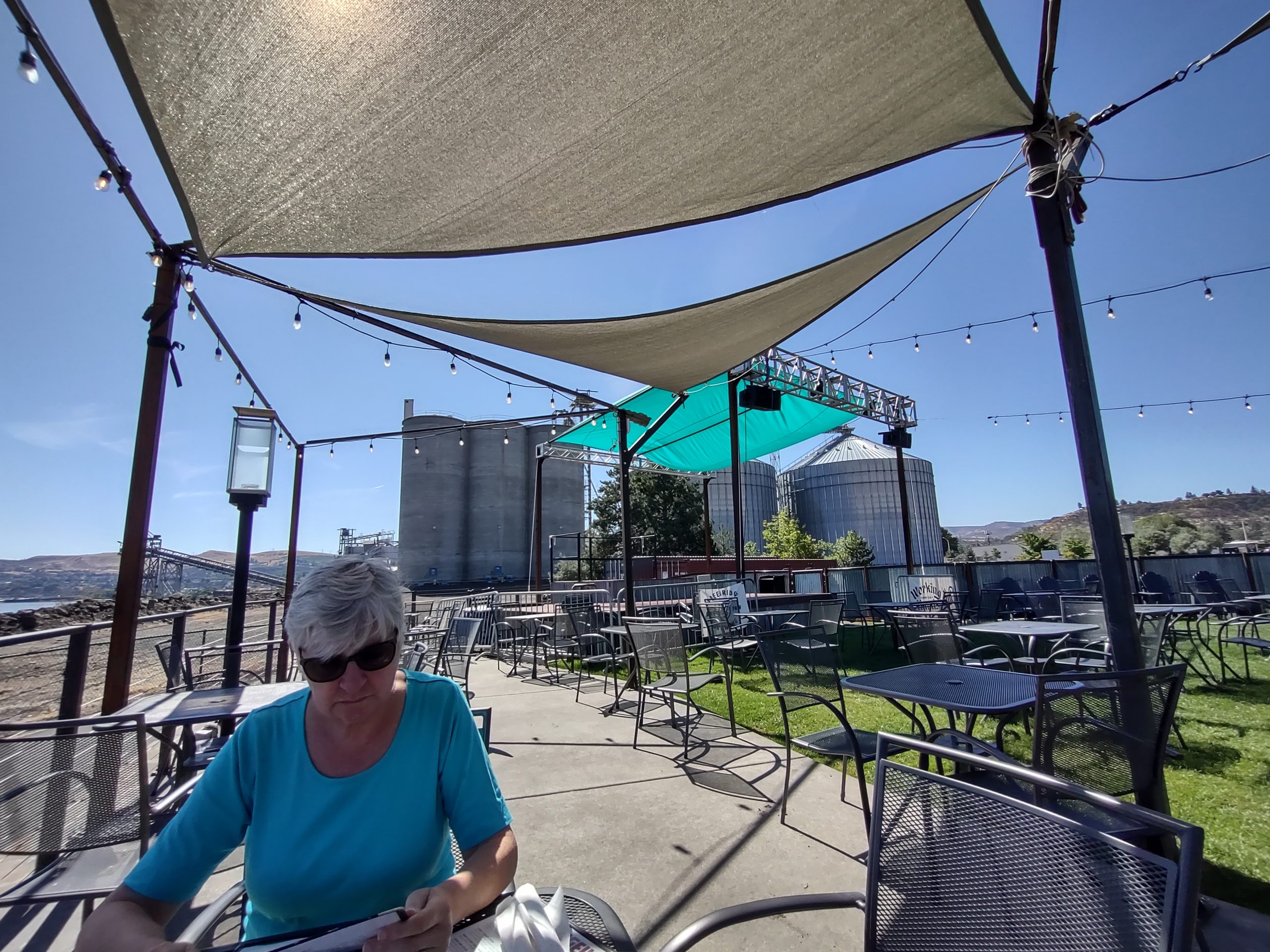 Probably my favorite place to have lunch in The Dalles is the Bargeway Pub. Situated right on the Columbia River near a grain loading facility, the Pub serves fantastic fish tacos, burgers and calamari, to mention only the items we’ve eaten. They feature live music and great vistas. Me and fellow golfers frequently come here for lunch after walking 18 holes. And Deb likes it, too!