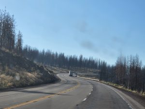 On Sept 5th, we decided to leave The Dalles a day early. There were wildfires in northern California that lay squarely on our route, and their containment was proceeding quite slowly. We plotted a route to Klamath Falls, then to Susanville CA and thence to Vacaville CA. That route swings quite wide and east around the fires.