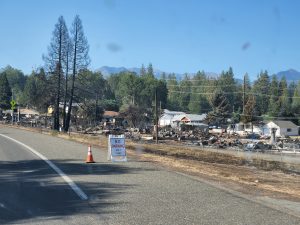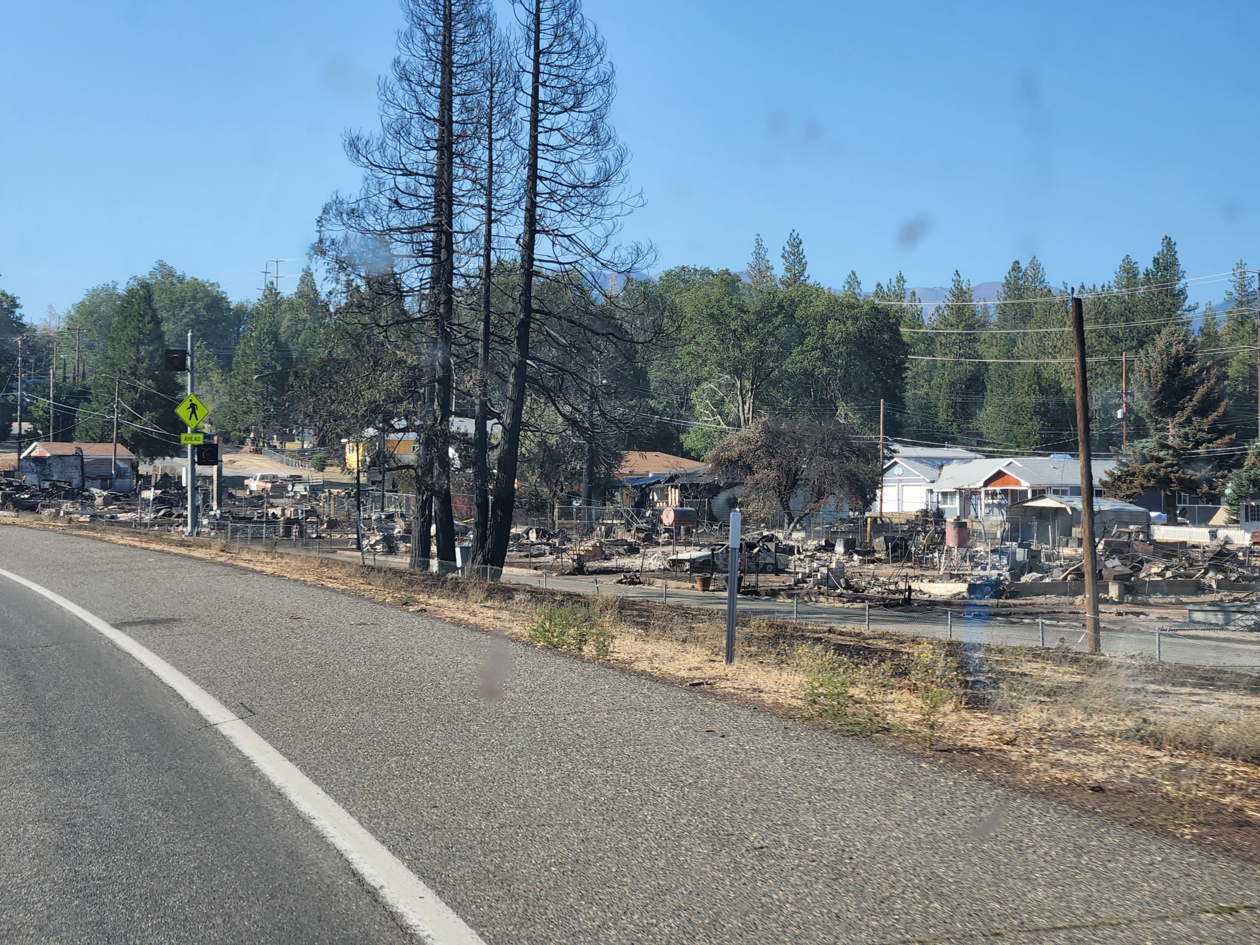Passing through Weed was sobering. We were used to seeing burnt forests, having seen them in various places in the West and in Australia. However, the Mill Fire burned through neighborhoods in Weed, leaving nothing but char and ashes.