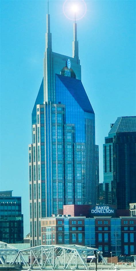 Start odo 31094. Easy access back to I-40, on which I continued past Nashville nearly to KY. There’s an interesting building on the Nashville skyline that looks like two statues of Meroni; turns out it is the BellSouth (now AT&T) building, sometimes called the Batman building.
