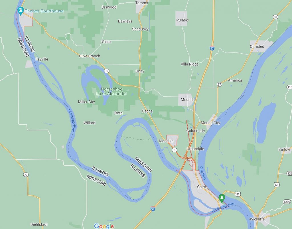 Crossed the Ohio river on an old scary, narrow truss bridge. Took it slow, as 18-wheelers were coming the other direction. My route is called the National Great River Road in Illinois. Low rice paddies with water being pumped into them from rivers and creeks. Passed through Cairo, IL, which is a dead river town. On the far side of Cairo, as part of a railroad overpass, there was a huge overhead levee gate that gets raised or lowered depending on river flooding. Continued sighting lots of redwing blackbirds, unsurprising since there is water and cat tails everywhere.